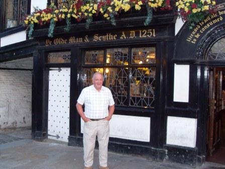 This is the first pub we went in, one of the oldest in Britain, `Ye Olde Man and Scythe`, built in 1251 and refurbished in 1636. The Earl of Derby from Liverpool spent his last night in there then dragged out and had his head removed on the scaffold during the civil war in 1651.
