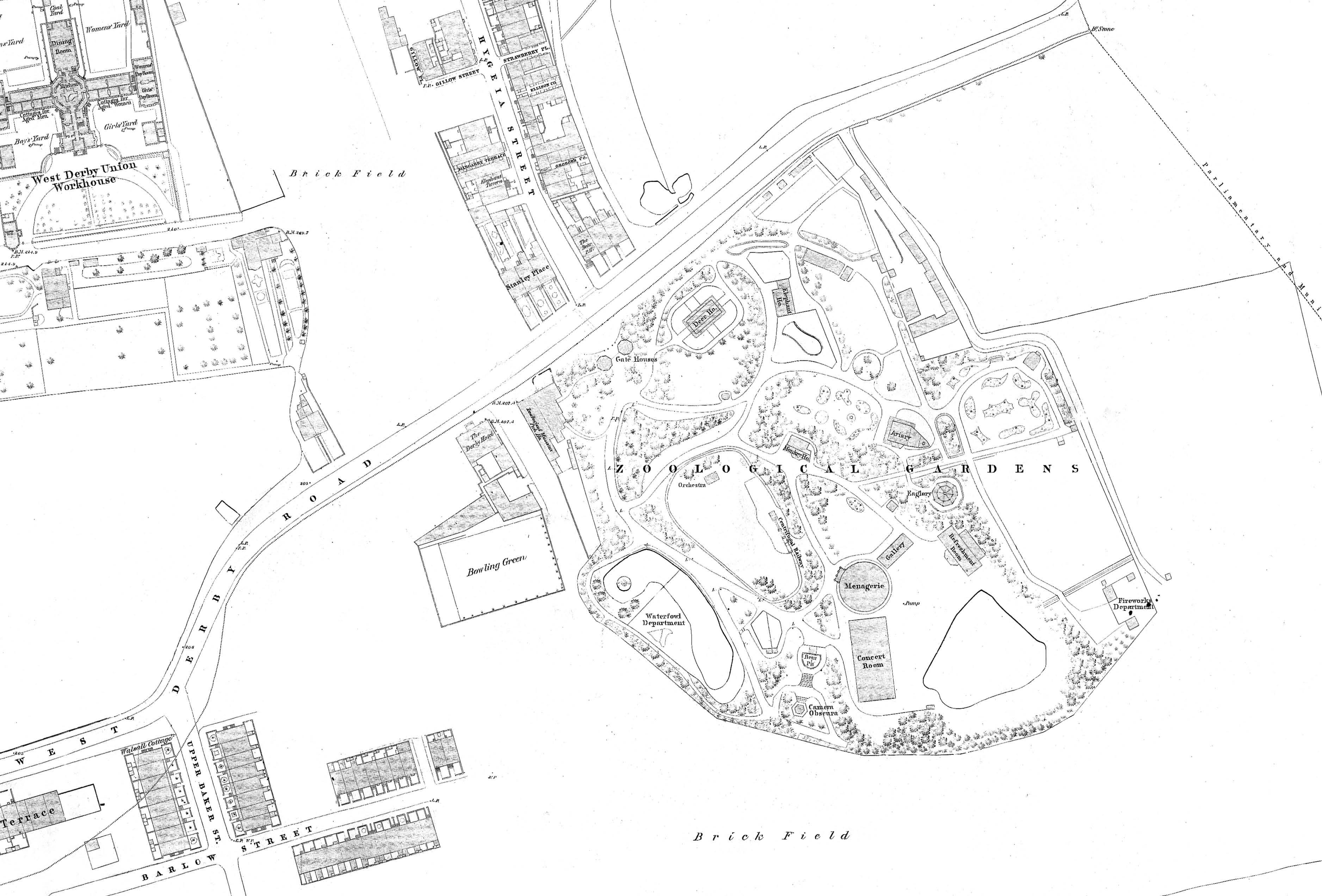 Just one point on Kensington Gardens. Although they appear to be linked to the Zoological Gardens on West Derby Road, they are in fact independent of each other, and are broken by Kensington (road). The Zoological Gardens were established first and clearly shown on maps of the 1850's. Part of Kensington Park was a reservoir at that time. Although now filled in the outline does survive.