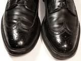 My grandad had the handmade brogues very light tan size 11 huge things like boats, my dad, ex-army, was the one with the highly polished shoes, black wingtip or Oxford shoes with blue and grey suits, brown brogues with Prince of Wales checks etc.Later on his grandsons wanted his brogues because they were so well looked after.