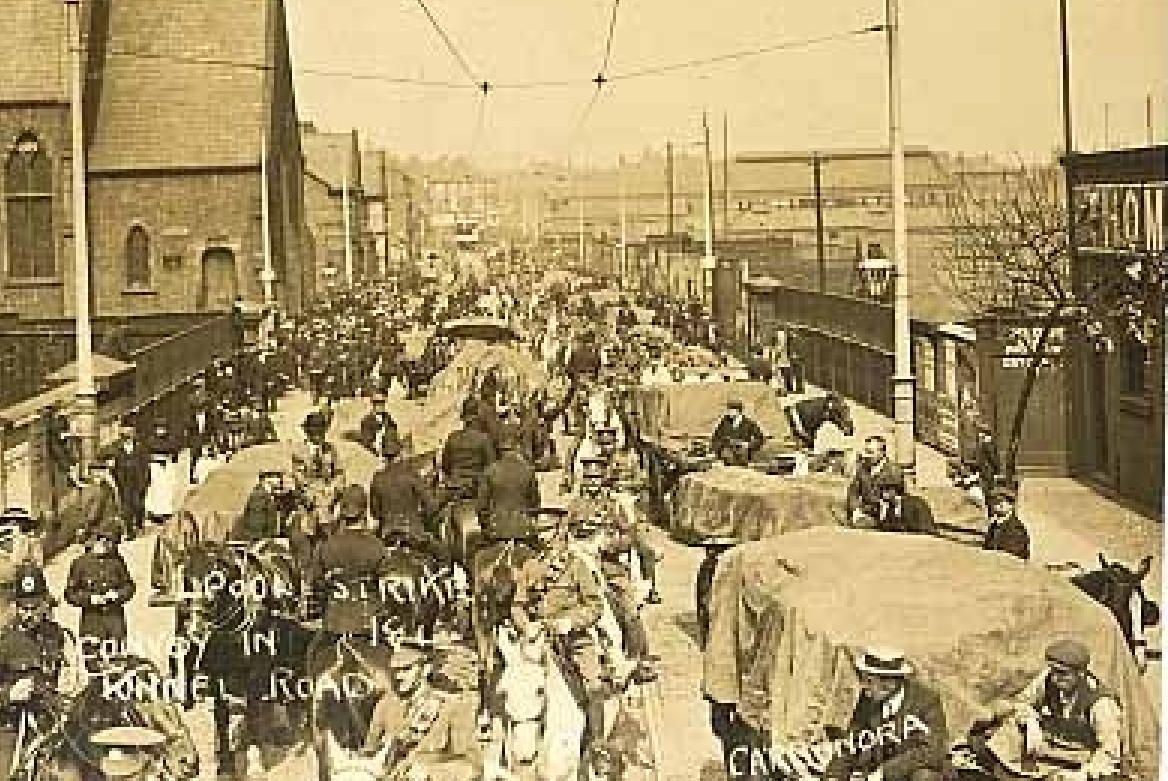 If that picture is original, it will be one of the 1911 Police Strike postcards.